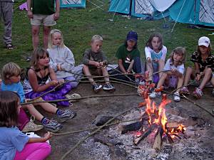 Tábor má tradičně základnu na krásném místě na břehu lipenské přehrady. Všichni spíme ve stanech s jednoduchými lůžky, společně vaříme na otevřeném ohni a myjeme se v přírodních umývárnách a sprchách. Vodu čerpáme z hygienicky nezávadných zdrojů. K táboru patří budova, která nám slouží jako zázemí, a to nejen k ukládání táborového materiálu, ale také jako klubovna při nepříznivém počasí a marodka nikdy totiž nelze vyloučit nachlazení nebo jiné drobné zdravotní problémy dětí.