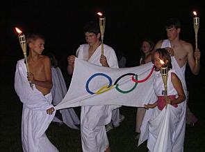 Stejně jako tomu bylo na dřívějších turnusech na tomto tábořišti se děti po oddílech střídaly v kuchyni a pod dohledem zkušeného kuchaře připravovaly i takové dobroty jako svíčkovou na smetaně. V programu nechyběly ani různé honičky a stopovačky v lese, který obklopuje celý náš tábor. Vyvrcholením pak byly Olympijské hry, kde děti i vedoucí předvedli nejen sportovní, ale hlavně velice zábavně provedené výkony.
